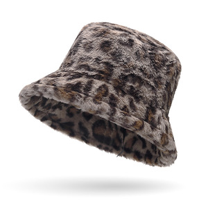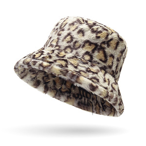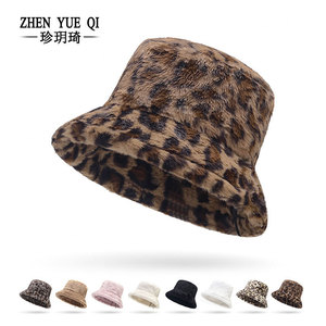 秋と冬の女性用の新しい豪華な漁師の帽子、厚くて暖かい女性用の毛皮の盆地帽子、ファッショナブルで多用途なヒョウ柄のクロスボーダー帽子