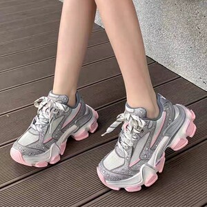 莆田は実店舗が登場しました。高品質のエイリアンワールド厚底ピンクダッドシューズレディースダーティスニーカー