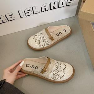 多用途で通気性のあるサンダル、女性用夏用スリッパ、新しい包頭ハーフスリッポン、2025年ビルケンシュトックシューズ、リネン