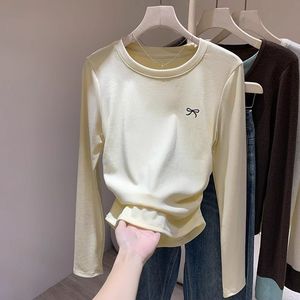 韓国版インカジュアル秋薄いホットガールスリム長袖Tシャツレディーススリムホットガールラウンドネックボトリングシャツトップ