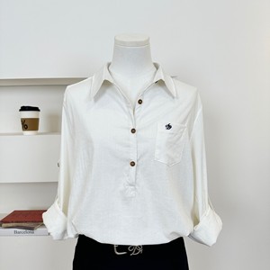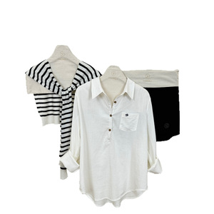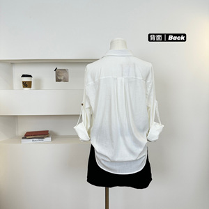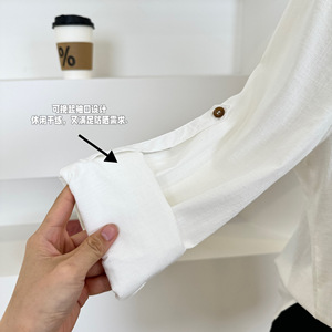 ANDYET AD1 綿麻風白シャツ レイジー通勤 ゆったりカジュアル ポロカラー 長袖 日焼け止め トップス ジャケット