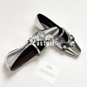 四角い頭の花が低くて、包頭の半スリッパの女性2025夏の新型の太さと一字の浅い口のメアリー珍の靴があります。