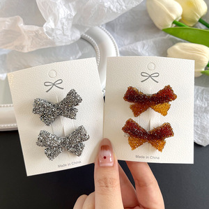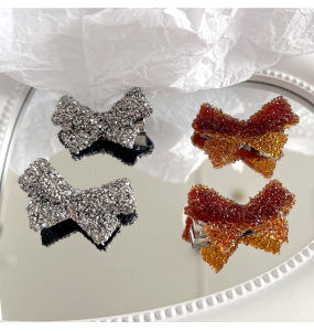フルダイヤモンドリボンヘアピン前髪サイドヘアピンファッショナブルなハイエンドシルバーヘアピン頭飾り女の子のヘアアクセサリー