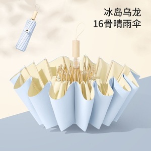 女性用16本骨傘、晴雨兼用折りたたみ日よけ傘、日焼け止め、UVカット、耐風傘