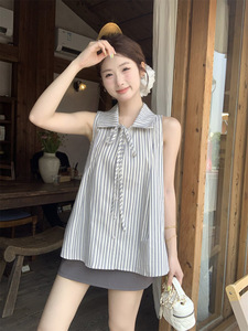 工場卸売りデザインフランス高級縞蝶ネクタイシャツ袖なし上着学生痩せベスト女性夏