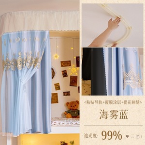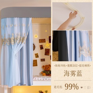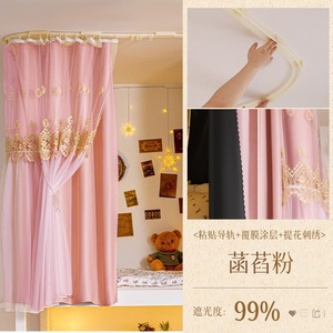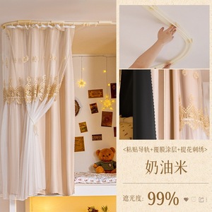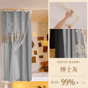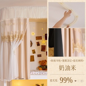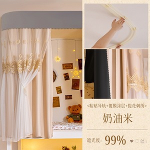 U字型トラックベッドカーテンを貼り付ける 学生寮の遮光カーテン 二段ベッド 強力遮光スムーズレール式二段ベッド