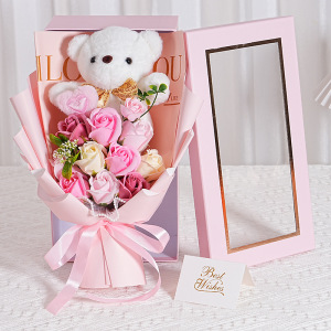 永遠のバラの香りの石鹸花束、テディベアギフトボックス、新作バレンタインデーギフト、卒業シーズンの造花束