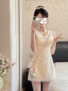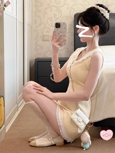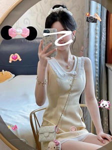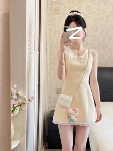 フレンチスタイルの小さな香りのベビードールカラーノースリーブドレス女性の夏のウエスト痩身リッチガールイエローショートスカート