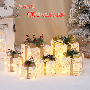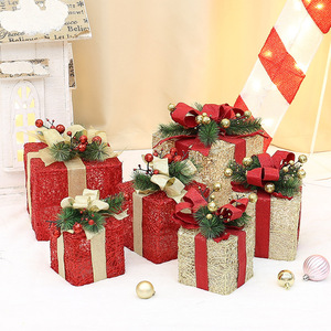 クリスマスゴールデンレッドライト高級ギフトボックスセット 8inch ライト付きウィンドウ装飾小道具と装飾品の組み合わせ