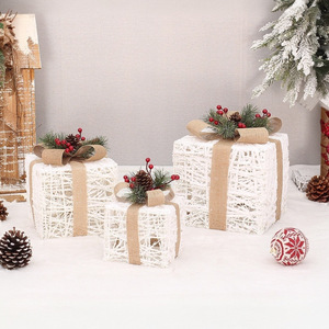 クリスマスリボンで飾られたギフトボックス、ギフトボックスセット3点セット、クリスマスツリーの下の飾り、ホリデーデコレーションの必需品