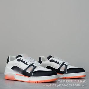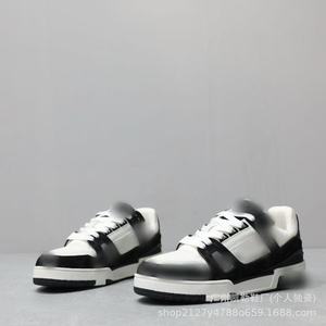 純粋なオリジナルの高級バージョントレーナー空接着剤クラフト小さな白い靴パン牛革黒と白のセメント男性と女性の靴