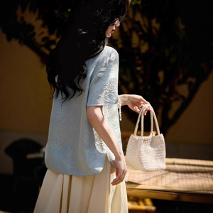 オリエンタルソナタ-ユンシューシャツジャカード斜め襟ボタン付きルーズ半袖トップ2025夏