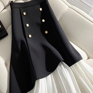 2025新款高端精致独特漂亮a字春夏季西装黑色气质拼接半身裙子女