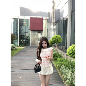 ガーリーフレンチスイートハート感年齢軽減水玉ベビードールシャツアセテートフラワーバドショーツセット