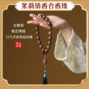 ジャスミンの香りのフレグランスビーズブレスレット、仏珠、18個の手持ちの古代工芸品ギフト