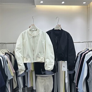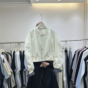 韩版纯色拼接袖百搭宽松小个子短外套2025春季新款棒球服女米白色