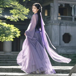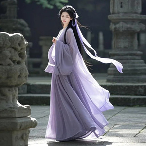 紫色の漢服女性の 2025 新魏晋スタイル南北朝改良されたワイドスリーブ流仙スカートは、仕事で着用でき、古代衣装として着用できます