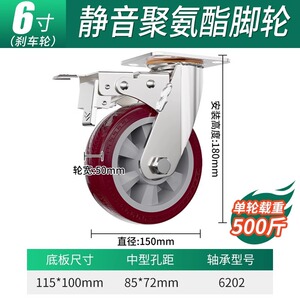 Mixiang 6inch ポリウレタンキャスターユニバーサルブレーキ付き工業用ヘビーデューティプーリー 4 インチ 5inch 8inch トロリーユニバーサルホイール