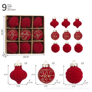 クロスボーダー新しい植毛クリスマスボールセットホリデークリスマスツリーペンダントブティックベルベット9パッククリスマスデコレーション