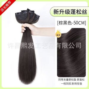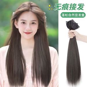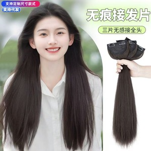 髪のボリュームを増やすウィッグ、ふわふわのスリーピースウィッグ、エレガントなロングストレートヘア、目に見えないシームレスで柔軟な人工毛エクステンション
