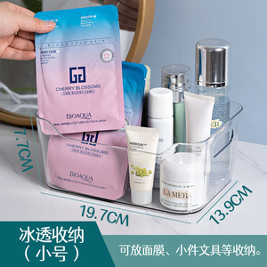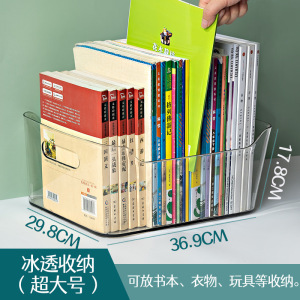 ハンドル付き国境を越えた透明なインゴット型PET収納ボックス学生書籍デスクトップ収納バスケットキャビネット雑貨収納