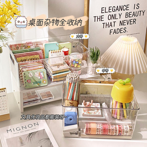 デスクトップ収納ボックスプラスチック家庭用学生寮化粧品マスク雑貨整理シンプルな積み重ね可能な収納バスケット