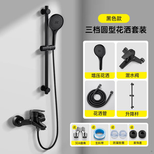 【ラウンド●ブラック】昇降加圧シャワーセット 厚みのあるフル銅製 30年保証