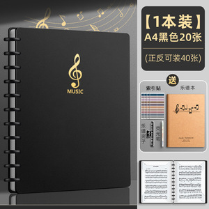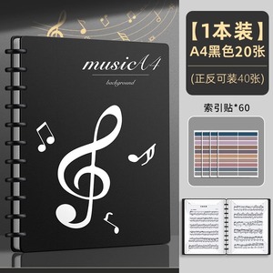黒色20枚/40ページ収納可能(インデックスシール+蛍光ペン+楽譜ノート+楽譜クリップ付き)