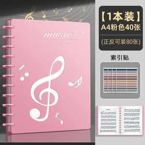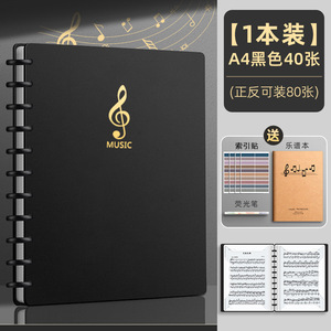黒色40枚/80ページ収納可能(インデックスシール+蛍光ペン+楽譜ノート+楽譜クリップ付き)