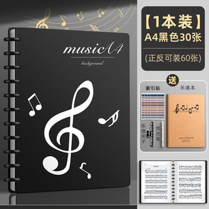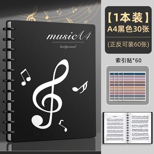 黒色30枚/60ページ収納可能(インデックスシール+蛍光ペン+楽譜ノート+楽譜クリップ付き)