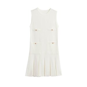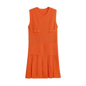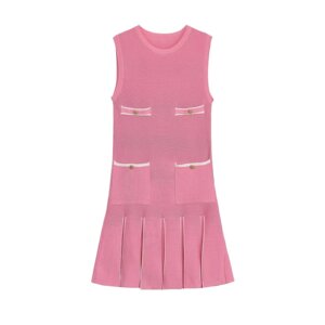 PB&ZA レディース 2025 夏新作 カレッジスタイル 年齢軽減 ワイドプリーツ ニット ミニドレス 3859025