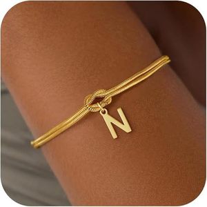 Amazonの新しい18Kゴールドメッキノットレターブレスレット、ファッショナブルな同心結び目ラウンドスネークボーンカップル友情ブレスレット