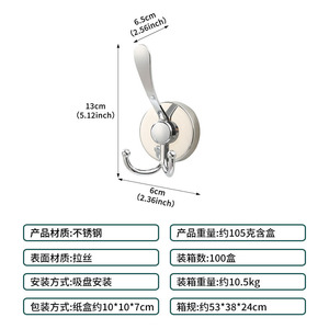 クロスボーダーステンレス鋼真空吸盤フックパンチフリー浴室浴室壁掛けタオルフック洋服フック