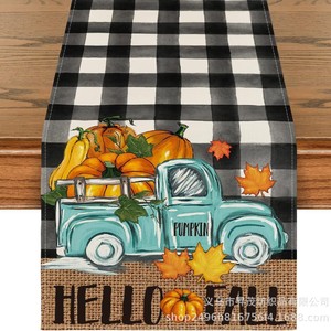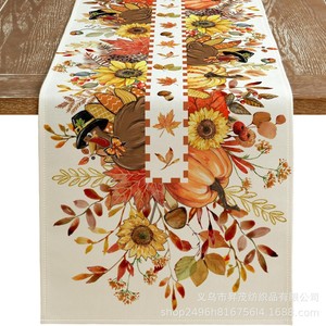 秋の感謝祭の七面鳥秋のカボチャのカエデの葉のプリントのポリエステルのテーブルの旗の雰囲気はテーブルクロスのテーブルの旗を飾ります。