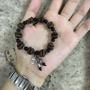 コーヒー豆爆発手串中国風オリジナルシンプルな天然石冷門小福牌ペンダントカップル