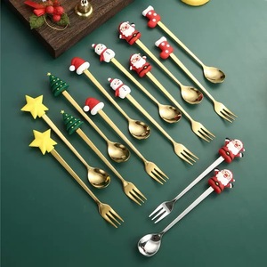 クロスボーダー304ステンレス鋼クリエイティブクリスマスフォークスプーンセットデザートフォークフルーツフォークコーヒースプーン攪拌スプーンかわいい