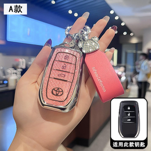 トヨタモデルA スマート3ボタン:ダイヤ柄ピンク(シングルセット+ダイヤ散りばめクマ頭ストラップ)