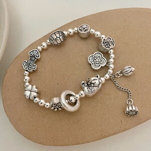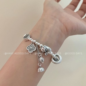 幸運の猫、良いことを願う、ピーナッツとレンコンのペンダントブレスレット、新しい中国風のレトロな個性、多用途で古いスタイルのハンドジュエリー