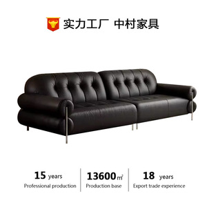 黒糖ブラッククラウドソファアンティークスタイルレザーリビングルームフレンチレトロビッグブラック牛頭層牛革ソファ