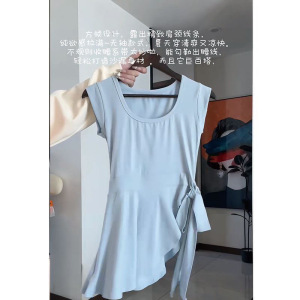 2025年新作韓国風ホットガールファッションウエストノースリーブトップと万能ショートスカートのツーピーススーツの夏セット