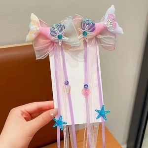 夏の女性のスーパーフェアリーリボン編み込みヘアピン子供用マーメイドヘッドドレスかわいい女の子マーメイドシェルヘアアクセサリー