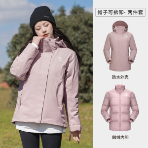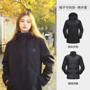 キャメルグースジャケットメンズグースダウンライナースリーインワンダウンジャケットレディース新しい防風防水登山ジャケット