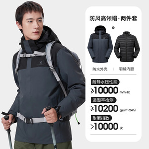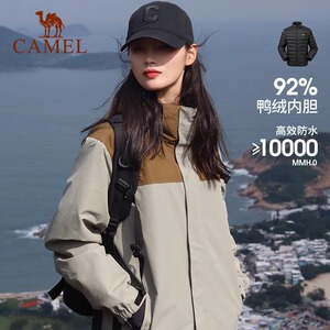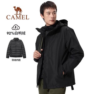 キャメルダウンライナージャケット男性と女性のためのスリーインワン取り外し可能なジャケット冬の防風防水ダウン服