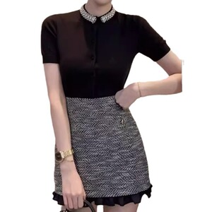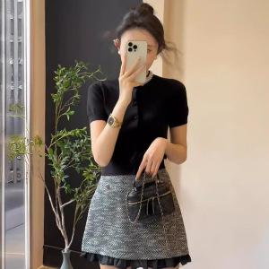 Xiaoxiangfeng ファッションスーツ女性のための 2025 夏の新しいスタイル小人年齢削減痩身トップスとスカートツーピーススーツ