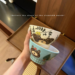 熊とビスケットの巻き5インチの陶磁器のご飯の碗の家庭の新型の高い顔の値の漫画の碗の美しい碗はかわいいです。