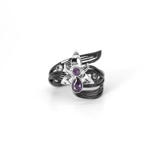 外国貿易デザイン中空フラワーリングダイヤモンド付きカップルツートンカラー人差し指リングオープン不規則なウォータードロップリング