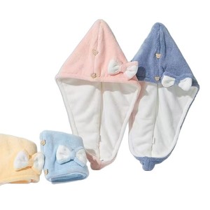 二重蝶結びシャワーキャップ、コーラルベルベット、柔らかく吸水性があり、繊細で快適、ギフト、家庭用、業務用、卸売