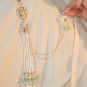 中国服ペンダント、チャイナドレス、漢服、レトロな気質アクセサリー、ロングタッセル、蓮の花の襟、多用途アクセサリー