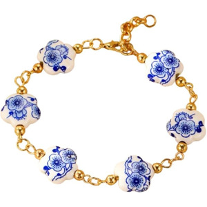25国境を越えた新製品の国風青花陶磁器珠金色CCBビーズブレスレット