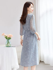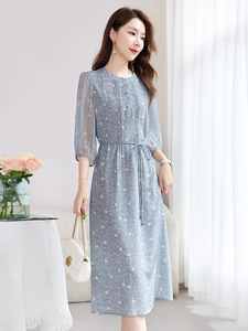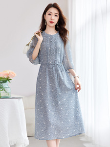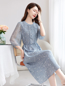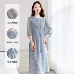 【喬其プリント】シルクワンピース高級感シルクワンピース夏100% 減齢a字スカート1155
